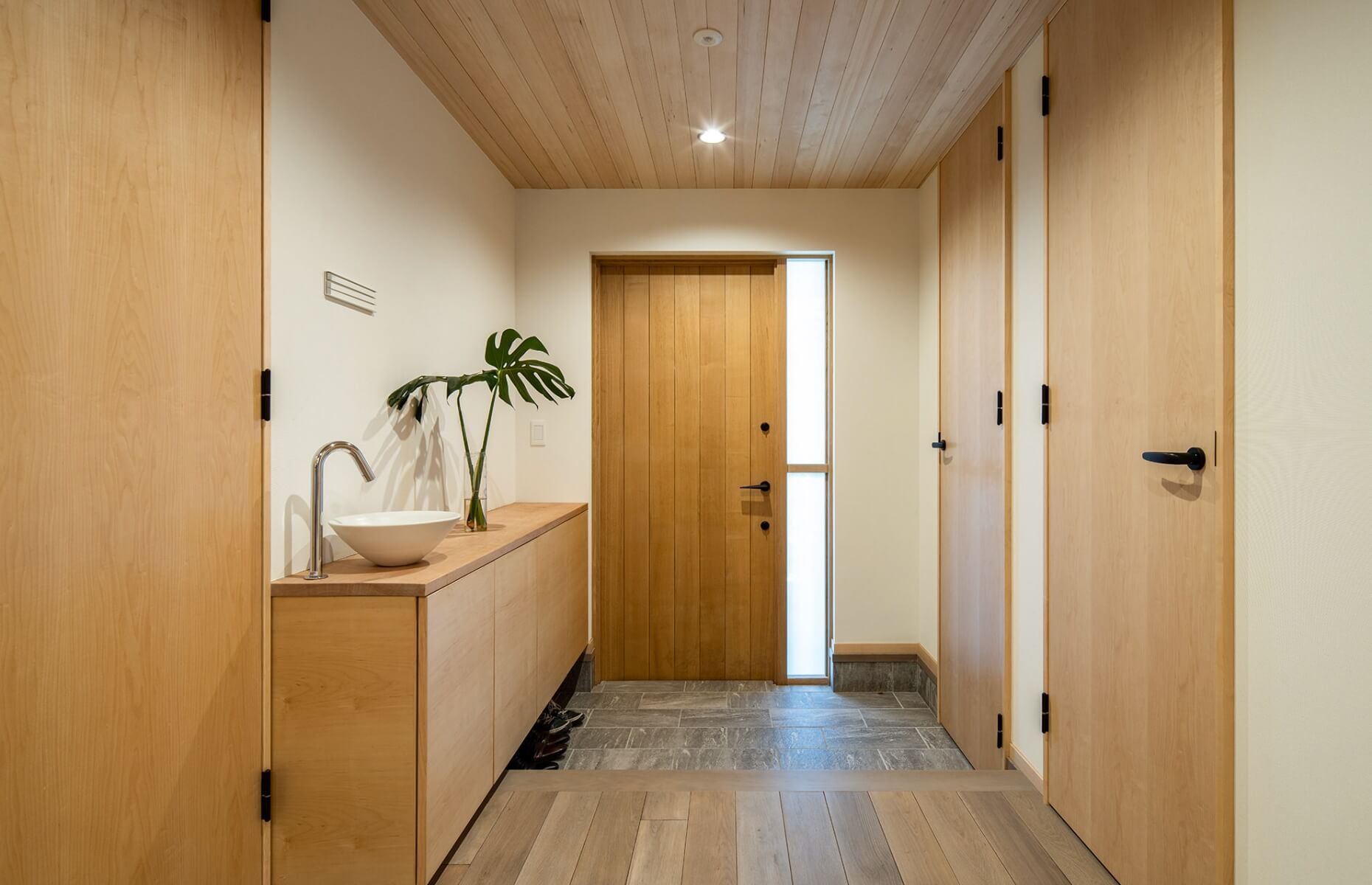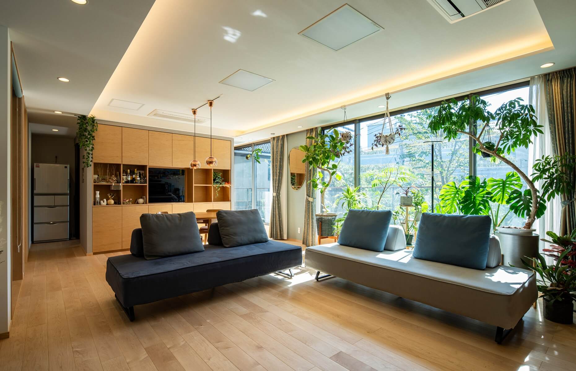 床材に加えて一枚板や壁面、天井に無垢材を追加することで、30%~45%の空間をつくることができます。